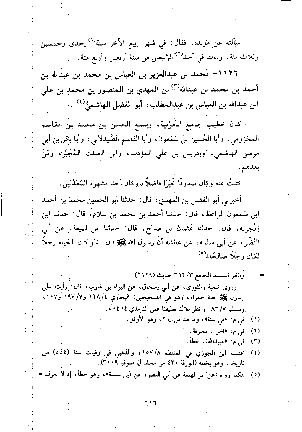 1126 - محمد بن عبد العزيز بن العباس بن محمد بن عبد الله بن أحمد بن محمد بن عبد الله بن المهدي بن المنصور بن محمد بن علي بن عبد الله بن العباس بن عبد المطلب أبو الفضل الهاشمي كان خطيب جامع الحربية، وسمع: الحسن بن محمد بن القاسم المخزومي، وأبا الحسين بن سمعون، وأبا القاسم الصيدلاني، وأبا بكر بن أبي موسى الهاشمي، وإدريس بن علي المؤدب، وابن الصلت المجبر، ومن بعدهم.