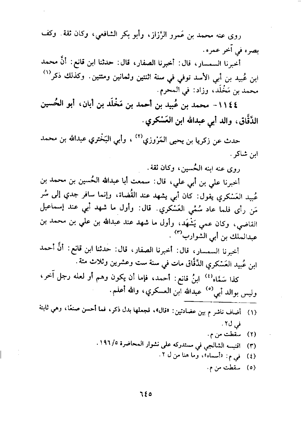1144 - محمد بن عبيد بن أحمد بن مخلد بن أبان أبو الحسين الدقاق والد أبي عبد الله ابن العسكري