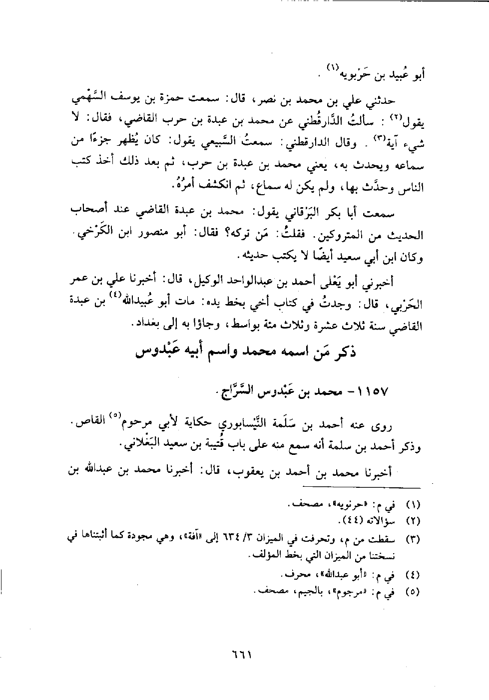1157 - محمد بن عبدوس السراج روى عنه: أحمد بن سلمة النيسابوري حكاية لأبي مرحوم القاص، وذكر أحمد بن سلمة أنه سمع منه على باب قتيبة بن سعيد البغلاني.