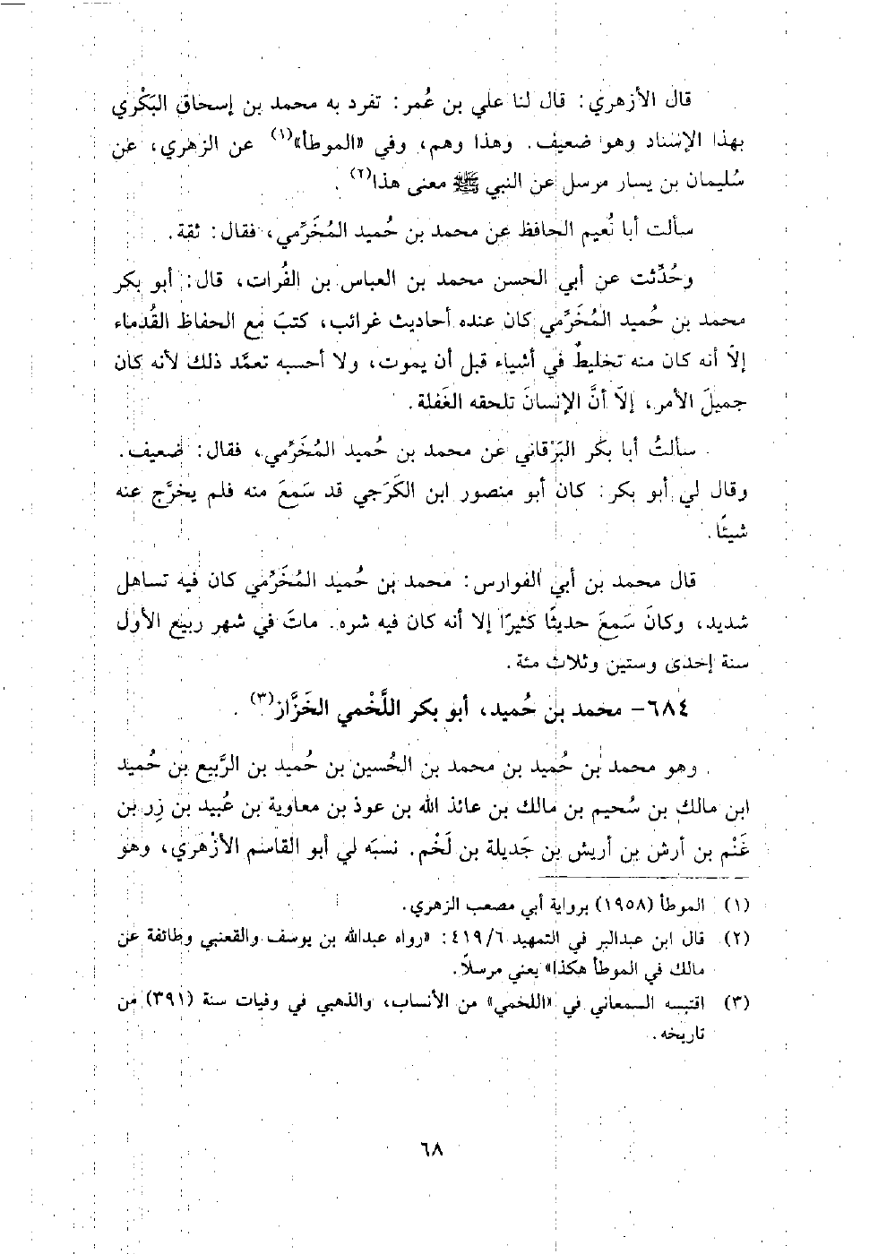 684 - محمد بن حميد أبو بكر اللخمي الخزاز وهو محمد بن حميد بن محمد بن الحسين بن حميد بن الربيع بن حميد بن مالك بن سحيم بن مالك بن عائذ الله بن عوذ بن معاوية بن عبيد بن زر بن غنم بن أرش بن أريش بن جديلة بن لخم.