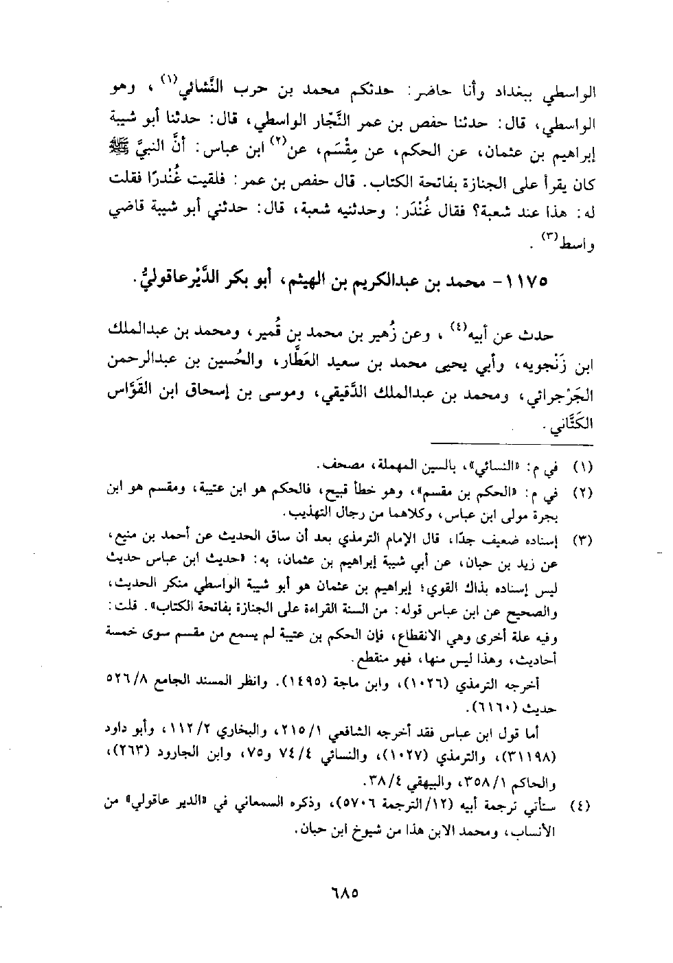 1175 - محمد بن عبد الكريم بن الهيثم أبو بكر الديرعاقولي حدث عن: أبيه، وعن زهير بن محمد بن قمير، ومحمد بن عبد الملك بن زنجويه، وأبي يحيى محمد بن سعيد العطار، والحسين بن عبد الرحمن الجرجرائي، ومحمد بن عبد الملك الدقيقي، وموسى بن إسحاق ابن القواس الكتاني.