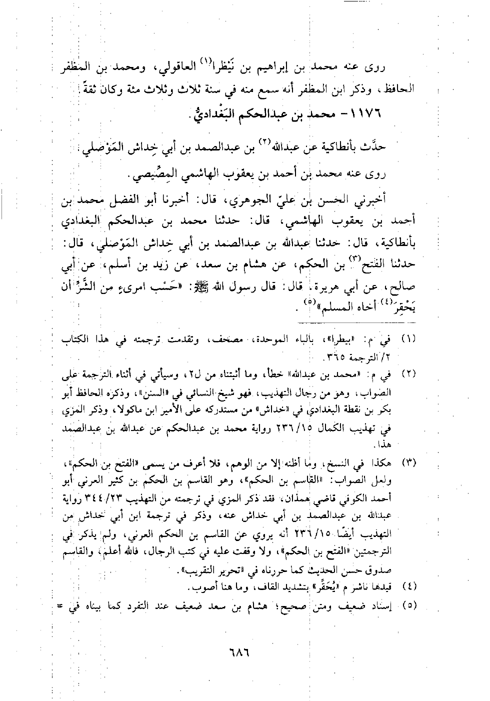 1176 - محمد بن عبد الحكم البغدادي حدث بأنطاكية عن: عبد الله بن عبد الصمد بن أبي خداش الموصلي، روى عنه: محمد بن أحمد بن يعقوب الهاشمي المصيصي.
