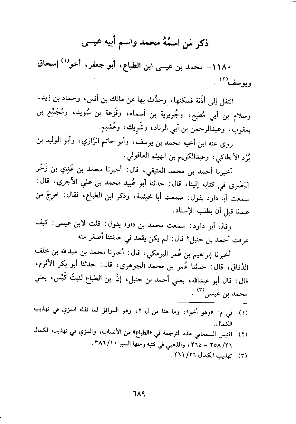 1180 - محمد بن عيسى ابن الطباع أبو جعفر أخو إسحاق ويوسف