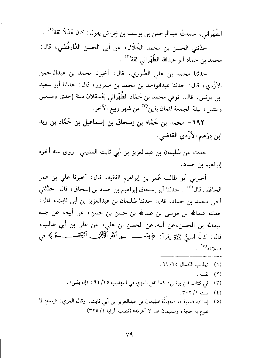 692 - محمد بن حماد بن إسحاق بن إسماعيل بن حماد بن زيد بن درهم الأزدي القاضي حدث عن: سليمان بن عبد العزيز بن أبي ثابت المديني.