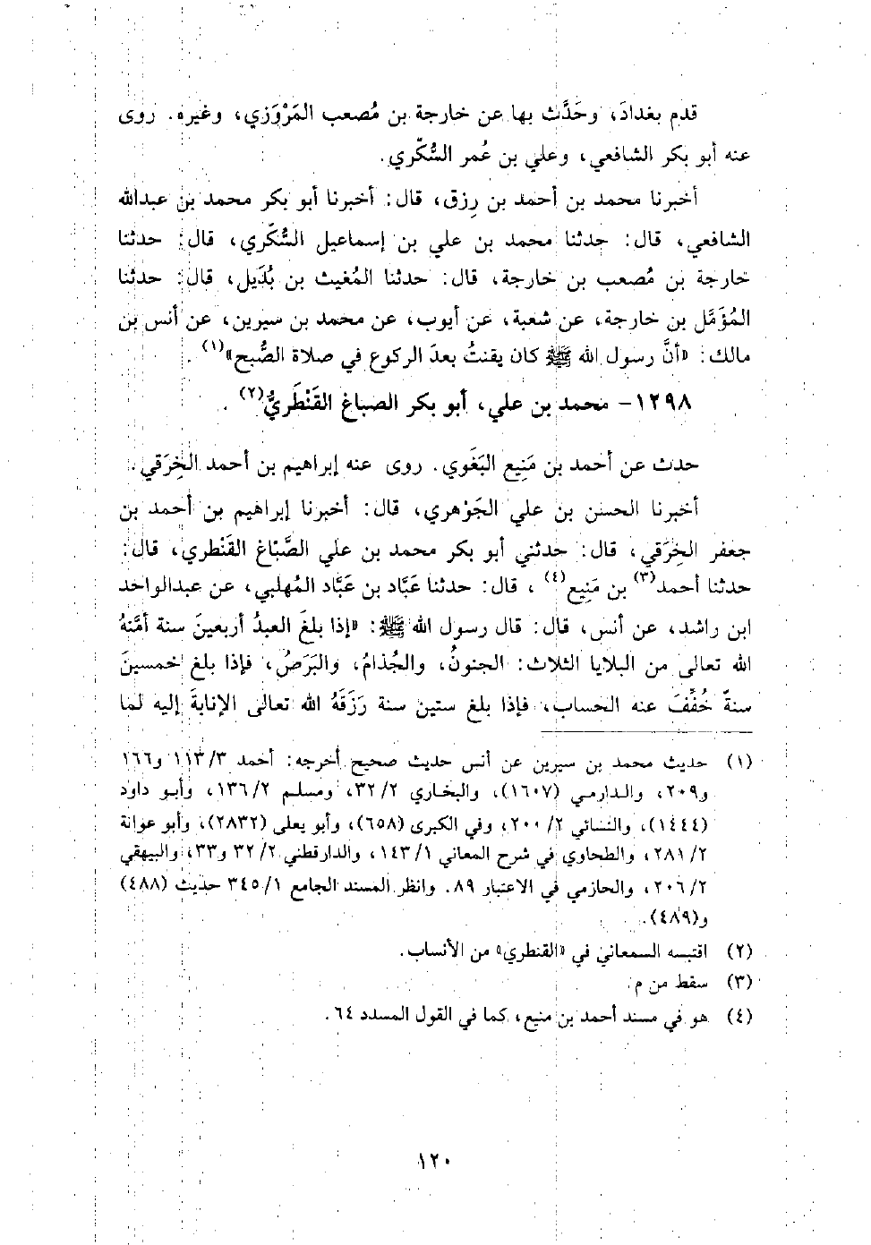 1298 - محمد بن علي أبو بكر الصباغ القنطري حدث عن: أحمد بن منيع البغوي.