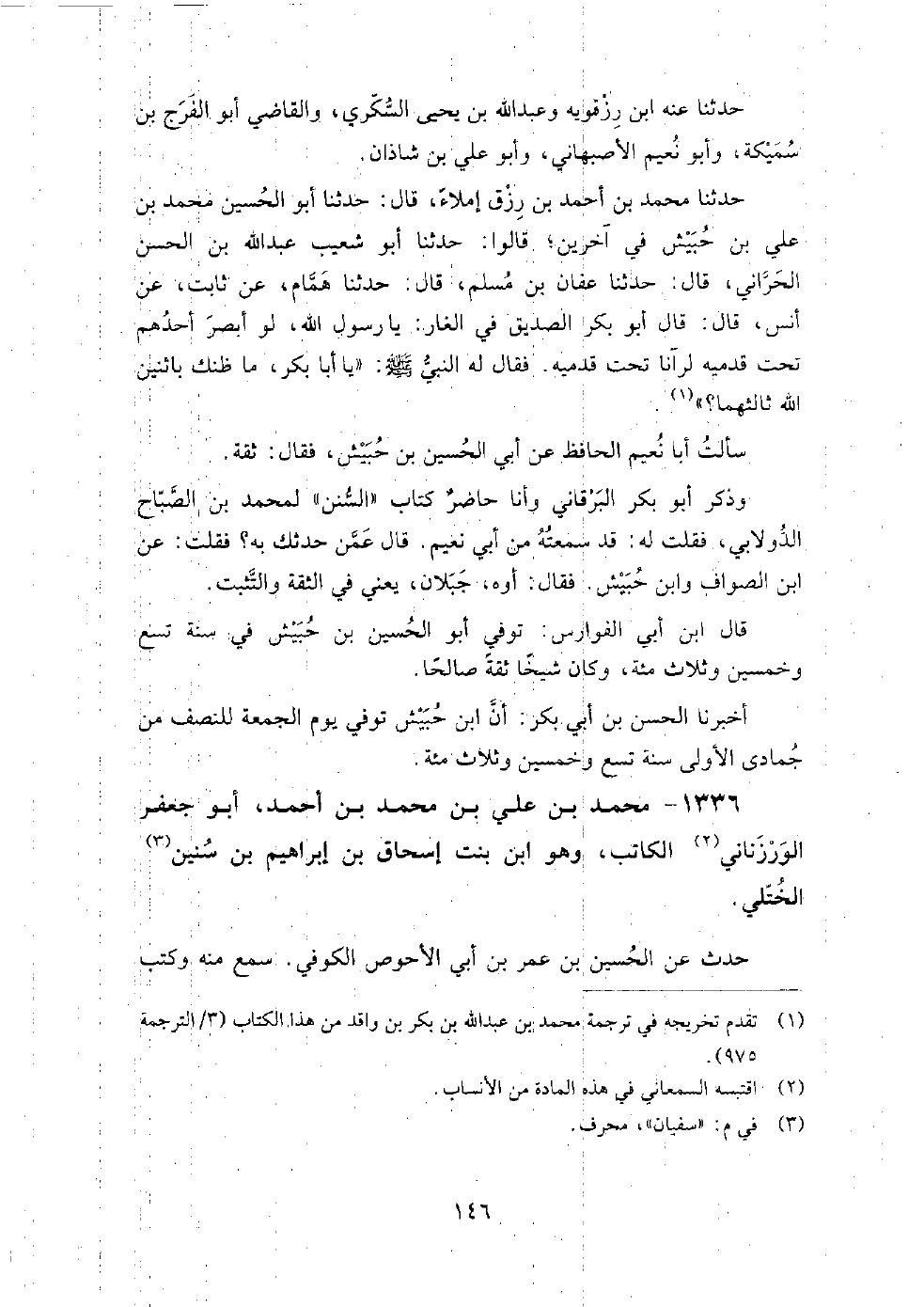 1336 - محمد بن علي بن محمد بن أحمد أبو جعفر الورزناني الكاتب وهو ابن بنت إسحاق بن إبراهيم بن سنين الختلي حدث عن الحسين بن عمر بن أبي الأحوص الكوفي سمع منه وكتب عنه محمد بن أحمد بن هاشم ومحمد بن أحمد بن الفتح المنصوري.