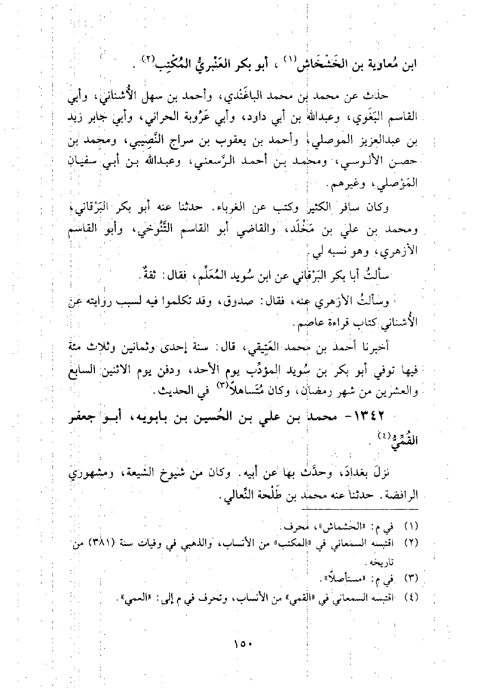 1342 - محمد بن علي بن الحسين بن بابويه أبو جعفر القُمِّيُّ نزل بغداد، وحدث بها عن أبيه.