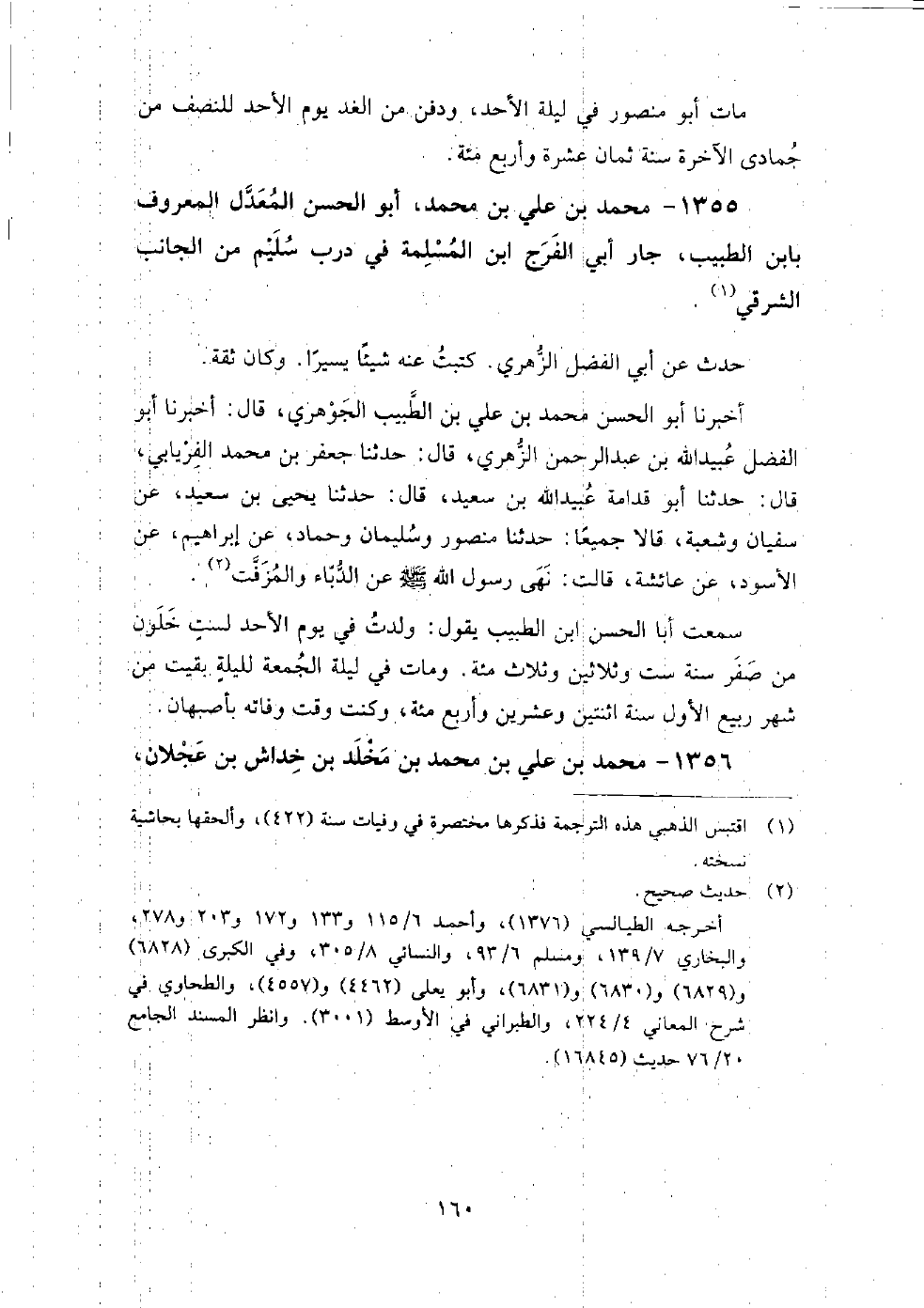 1355 - محمد بن علي بن محمد أبو الحسن المعدل المعروف بابن الطبيب جار أبي الفرج ابن المسلمة في درب سليم من الجانب الشرقي