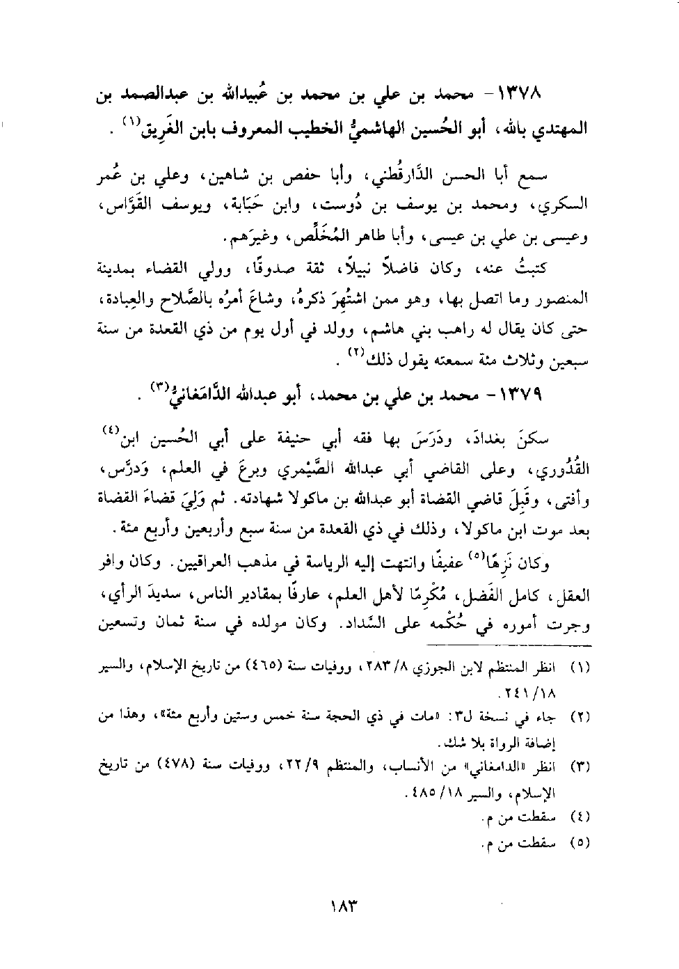 1378 - محمد بن علي بن محمد بن عبيد الله بن عبد الصمد بن المهتدى بالله أبو الحسين الهاشمي الخطيب المعروف بابن الغريق سمع أبا الحسن الدارقطني، وأبا حفص بن شاهين، وعلي بن عمر السكري، ومحمد بن يوسف بن دوست، وابن حبابة، ويوسف القواس، وعيسى بن علي بن عيسى، وأبا طاهر المخلص، وغيرهم.