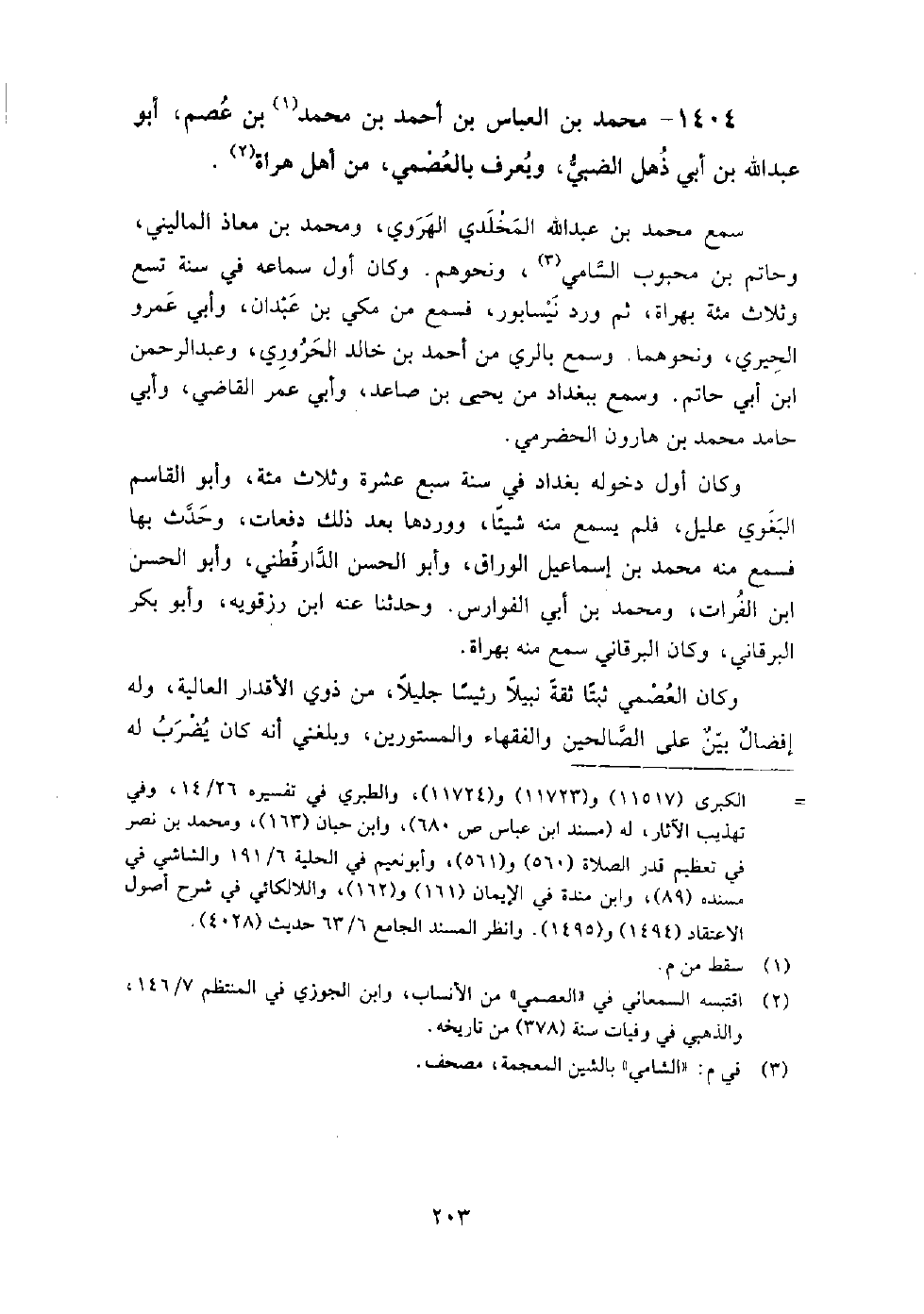 1404 - محمد بن العباس بن أحمد بن محمد بن عصم أبو عبد الله بن أبي ذهل الضبي ويعرف بالعصمي من أهل هراة،