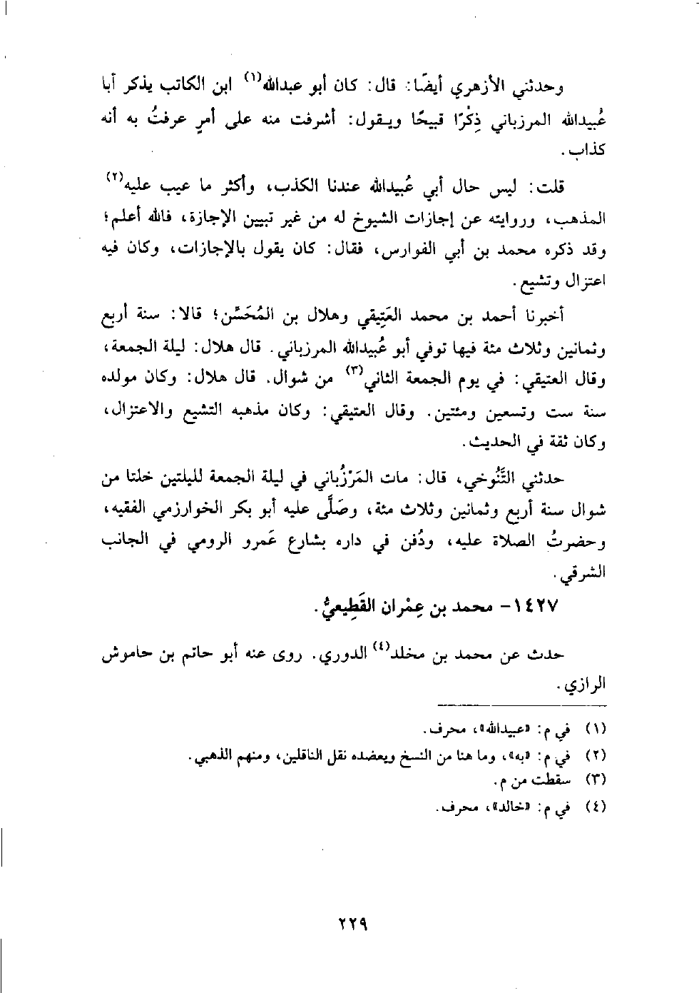 1427 - محمد بن عمران القطيعي حدث عن محمد بن خالد الدوري.