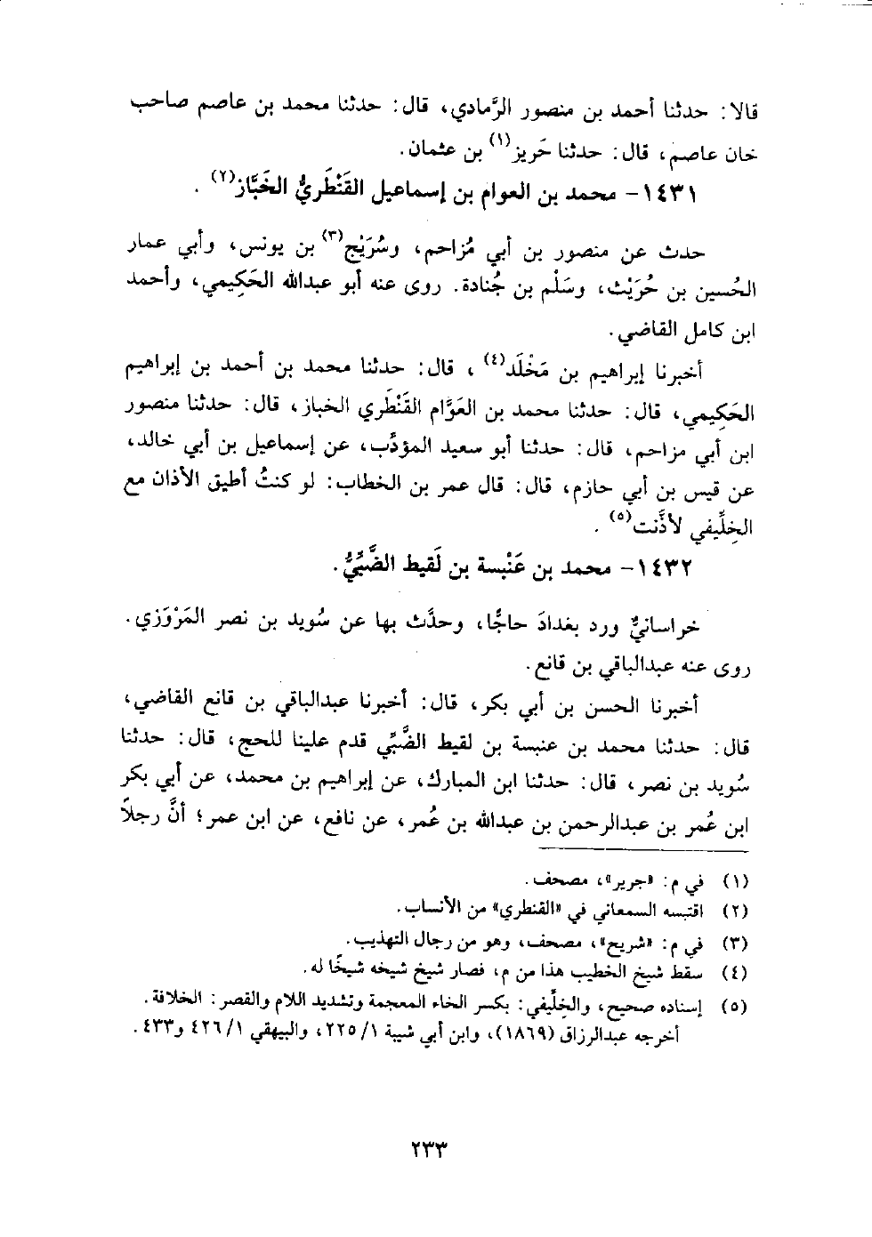 1432 - محمد بن عنبسة بن لقيط الضبي خراساني ورد بغداد حاجا، وحدث بها عن سويد بن نصر المروزي.
