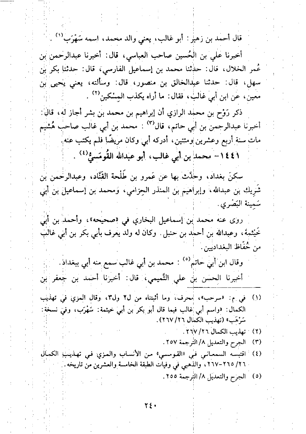 1441 - محمد بن أبي غالب أبو عبد الله القومسي سكن بغداد، وحدث بها عن عمرو بن طلحة القناد، وعبد الرحمن بن شريك بن عبد الله، وإبراهيم بن المنذر الحزامي، ومحمد بن إسماعيل بن أبي سمينة البصري.