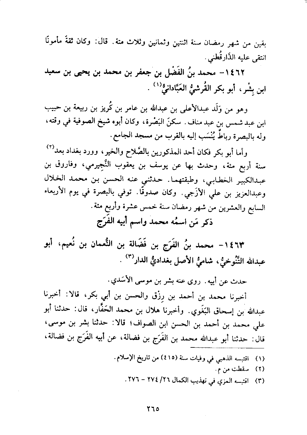 1463 - محمد بن الفرج بن فضالة بن النعمان بن نعيم أبو عبد الله التنوخي شامي الأصل بغدادي الدار