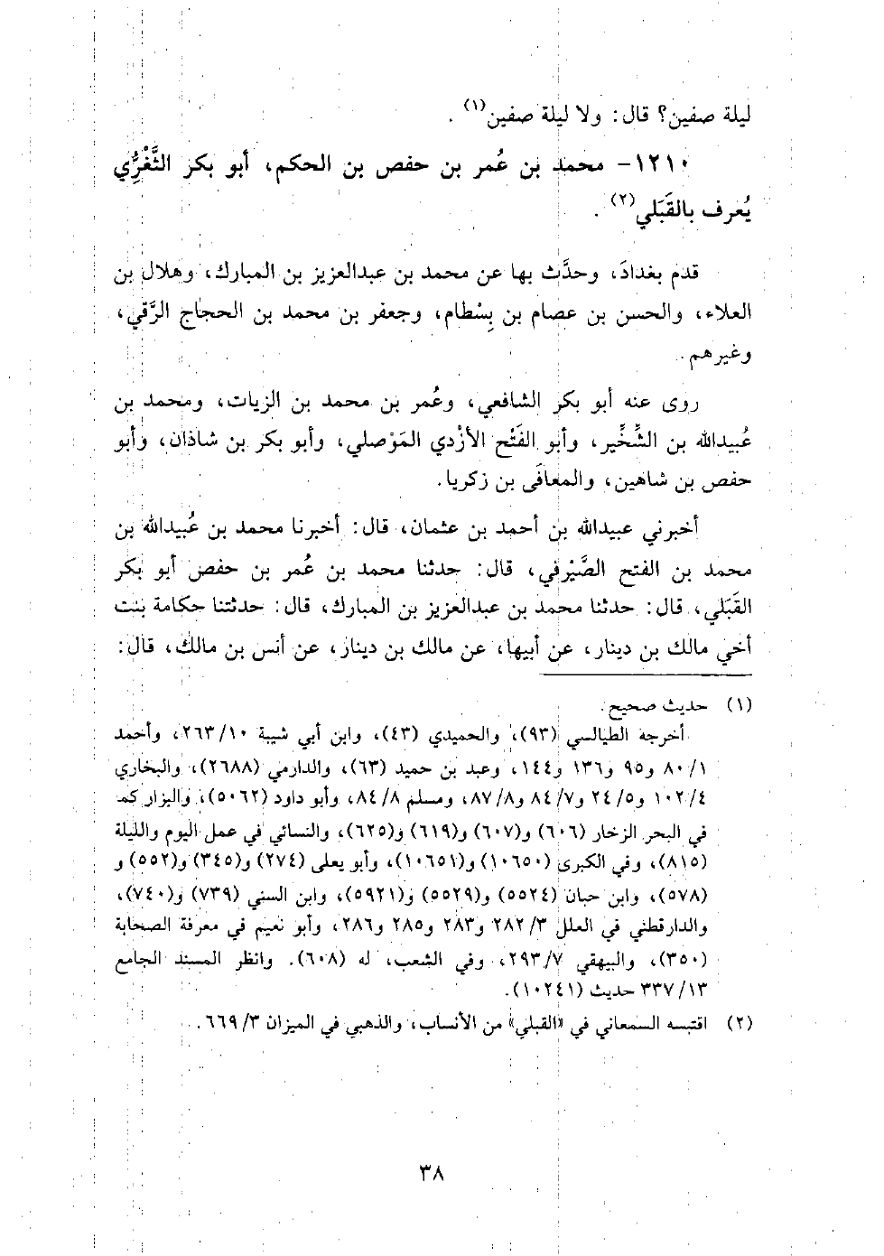 1210 - محمد بن عمر بن حفص بن الحكم أبو بكر الثغري يعرف بالقبلي قدم بغداد وحدث بها عن: محمد بن عبد العزيز بن المبارك، وهلال بن العلاء، والحسن بن عصام بن بسطام، وجعفر بن محمد بن الحجاج الرقى، وغيرهم.