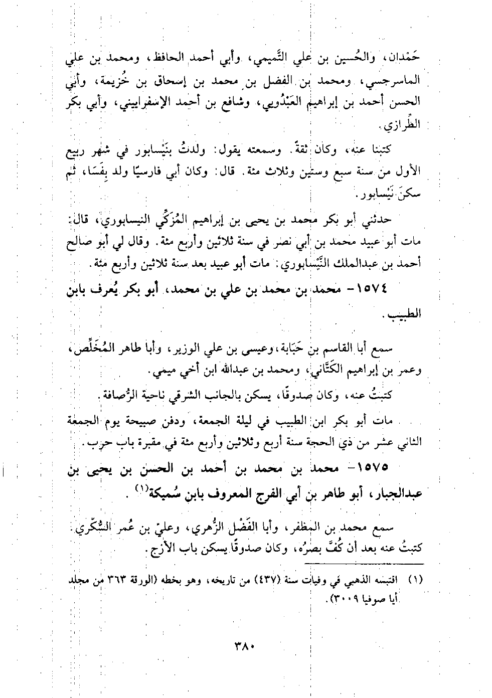 1575 - محمد بن محمد بن أحمد بن الحسن بن يحيى بن عبد الجبار أبو طاهر بن أبي الفرج المعروف بابن سميكة سمع محمد بن المظفر، وأبا الفضل الزهري، وعلي بن عمر السكري.