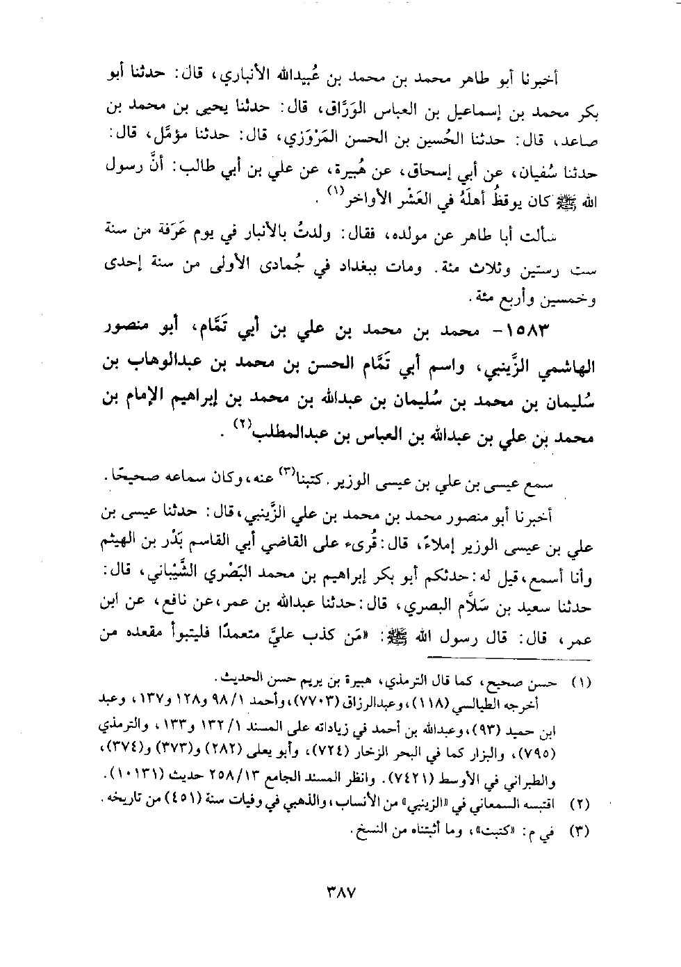 1583 - محمد بن محمد بن علي بن أبي تمام أبو منصور الهاشمي الزينبي واسم أبي تمام الحسن بن محمد بن عبد الوهاب بن سليمان بن محمد بن سليمان بن عبد الله بن محمد بن إبراهيم الإمام بن محمد بن علي بن عبد الله بن العباس بن عبد المطلب