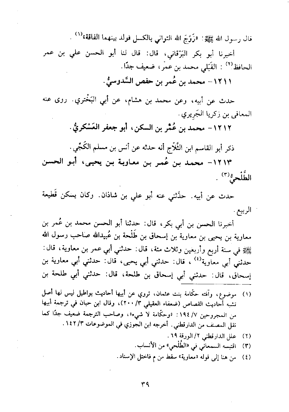 1213 - محمد بن عمر بن معاوية بن يحيى أبو الحسن الطلحي حدث عن أبيه.