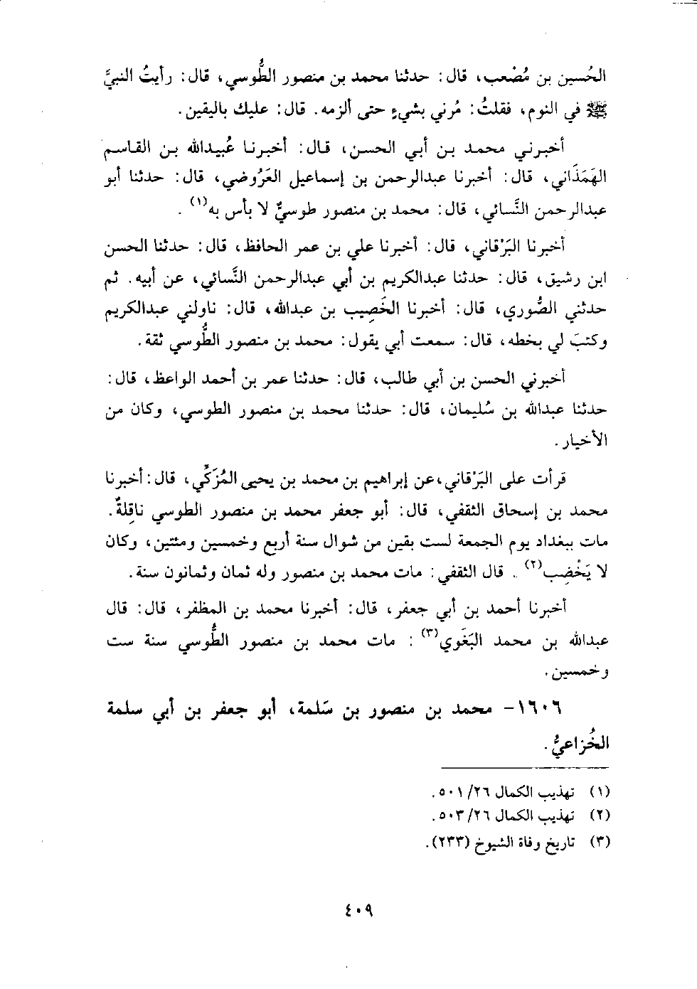 1606 - محمد بن منصور بن سلمة أبو جعفر بن أبي سلمة الخزاعي حدث عن: أبيه.