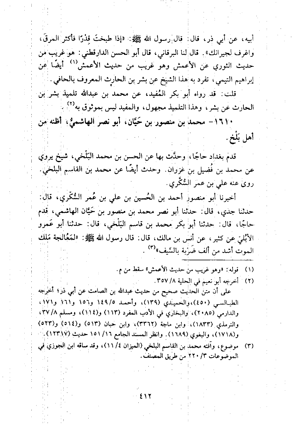 1610 - محمد بن منصور بن حيان أبو نصر الهاشمي أظنه من أهل بلخ، قدم بغداد حاجا، وحدث بها عن الحسن بن محمد البلخي، شيخ يروى عن محمد بن فضيل بن غزوان، وحدث أيضا عن محمد بن القاسم البلخي.