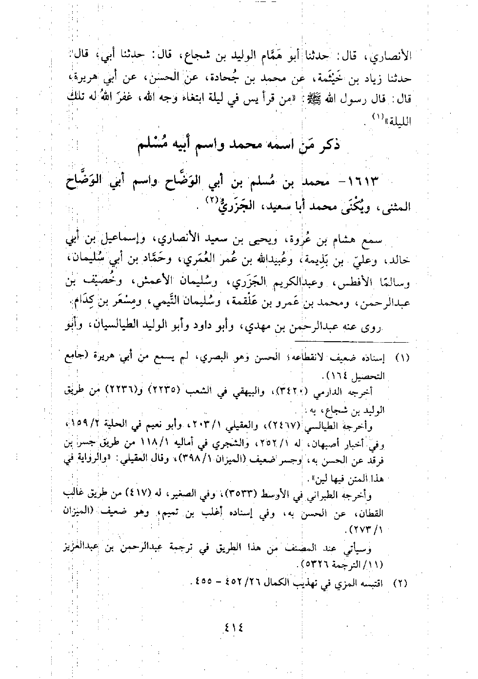 1613 - محمد بن مسلم بن أبي الوضاح واسم أبي الوضاح المثنى ويكنى محمد أبا سعيد الجزري