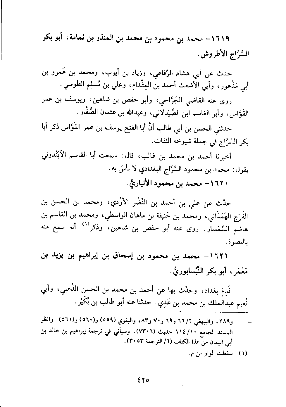 1620 - محمد بن محمود الأنباري حدث عن: علي بن أحمد بن النضر الأزدي، ومحمد بن الحسن بن الفرج الهمذاني، ومحمد بن حنيفة بن ماهان الواسطي، ومحمد بن القاسم بن هاشم السمسار.