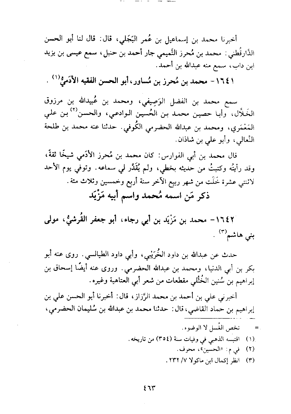 1642 - محمد بن مزيد بن أبي رجاء أبو جعفر القرشي مولى بني هاشم حدث عن: عبد الله بن داود الخريبي، وأبي داود الطيالسي.