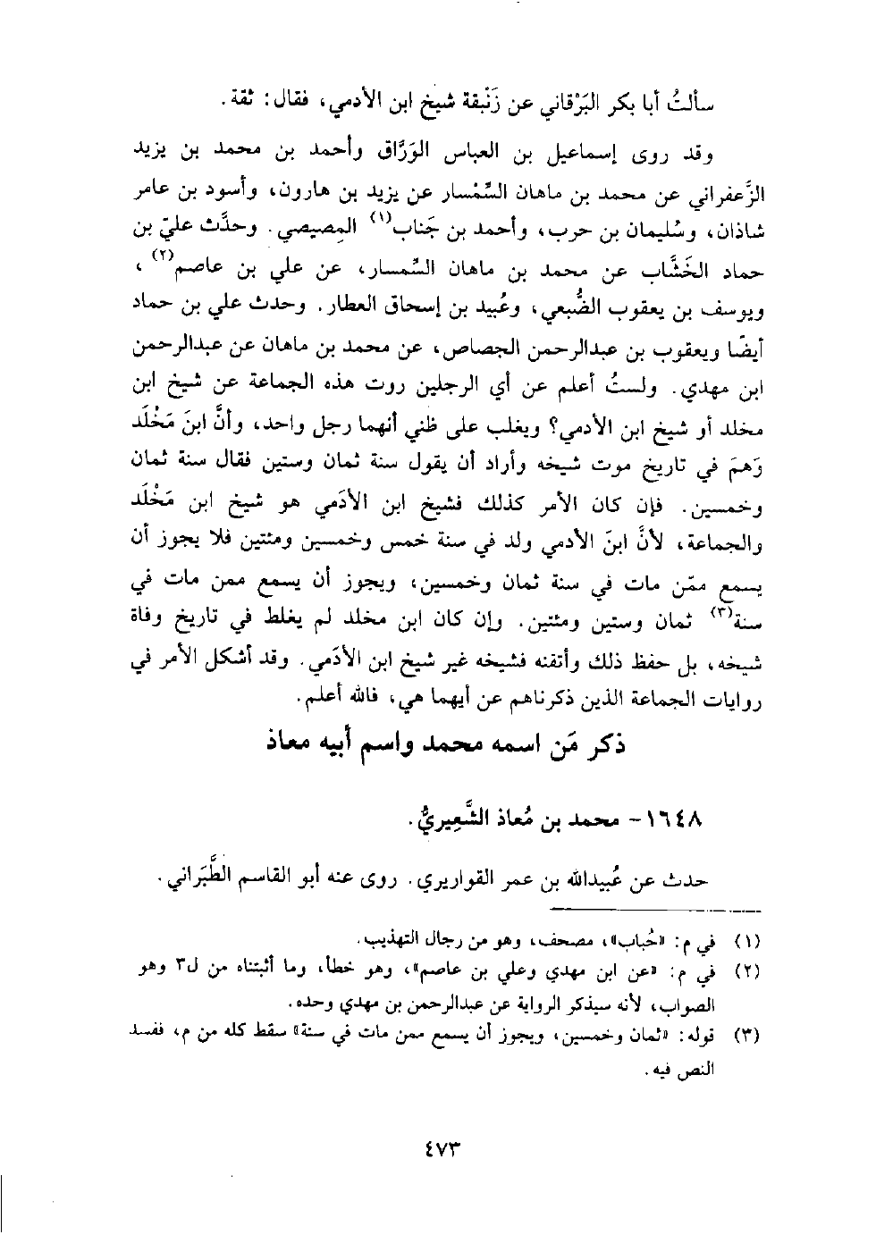 1648 - محمد بن معاذ الشعيري حدث عن: عبيد الله بن عمر القواريري.