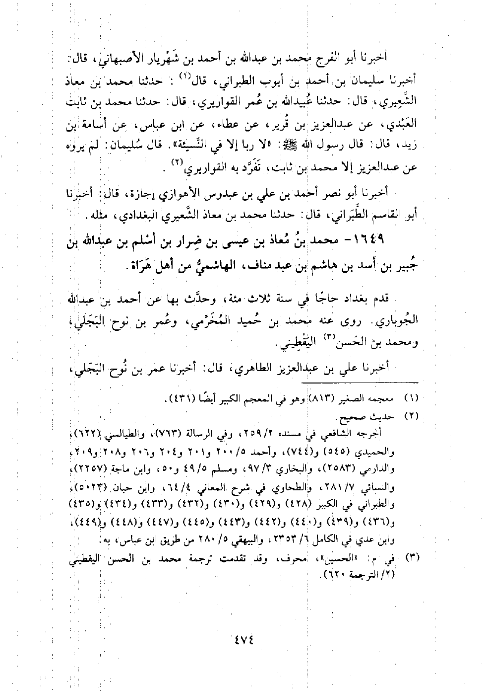 1649 - محمد بن معاذ بن عيسى بن ضرار بن اسلم بن عبد الله بن جبير بن أسد بن هاشم بن عبد مناف الهاشمي من أهل هراة،