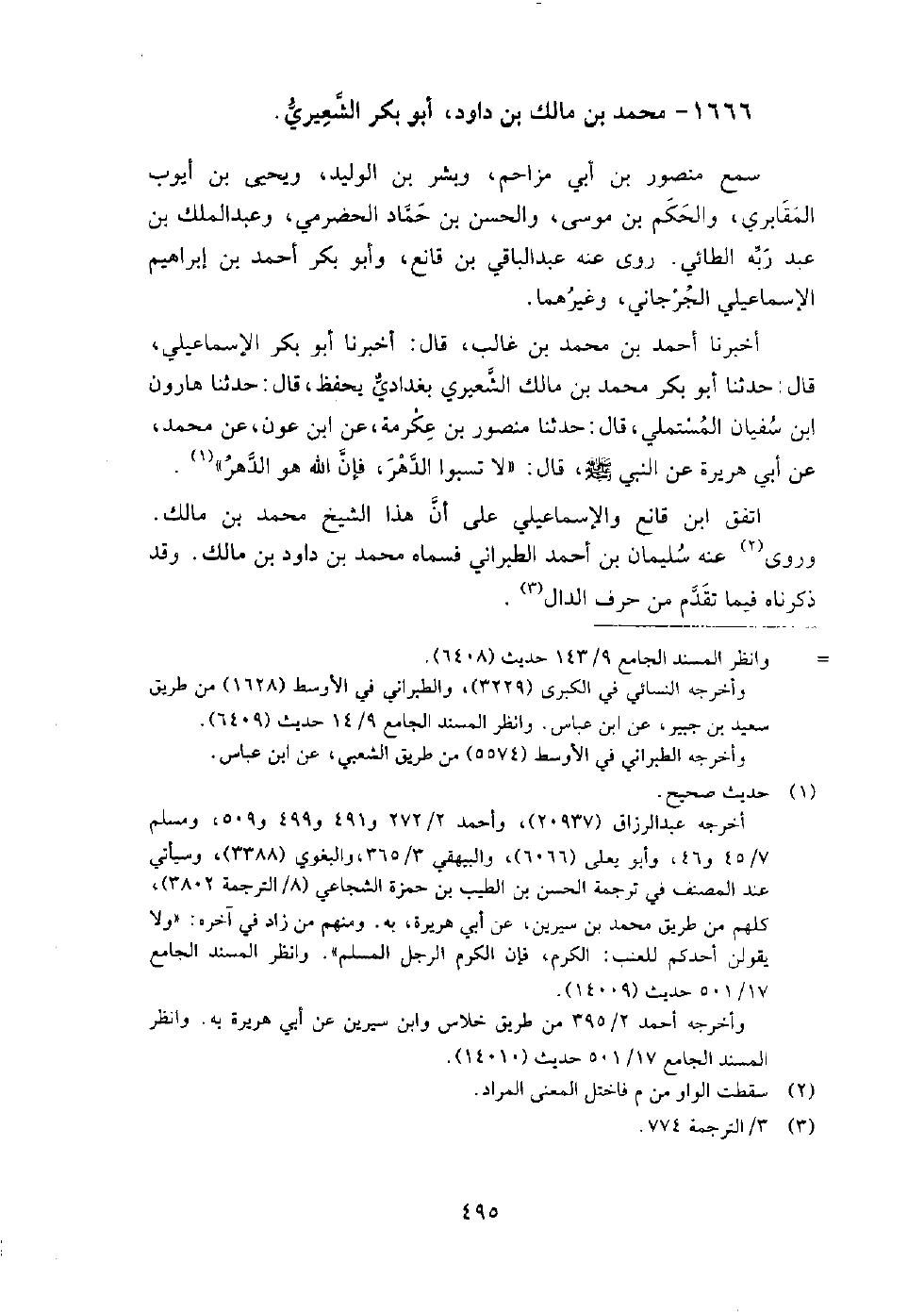 1666 - محمد بن مالك بن داود أبو بكر الشعيري سمع: منصور بن أبي مزاحم، وبشر بن الوليد، ويحيى بن أيوب المقابري، والحكم بن موسى، والحسن بن حماد الحضرمي، وعبد الملك بن عبد ربه الطائي.