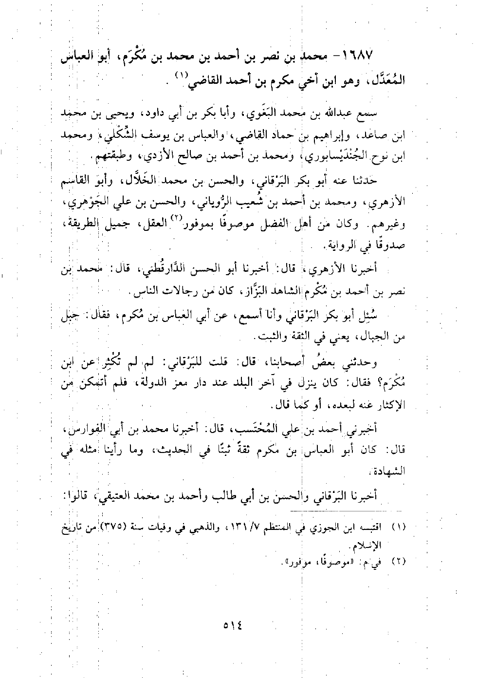 1687 - محمد بن نصر بن أحمد بن محمد بن مكرم أبو العباس المعدل وهو ابن أخي مكرم بن أحمد القاضي