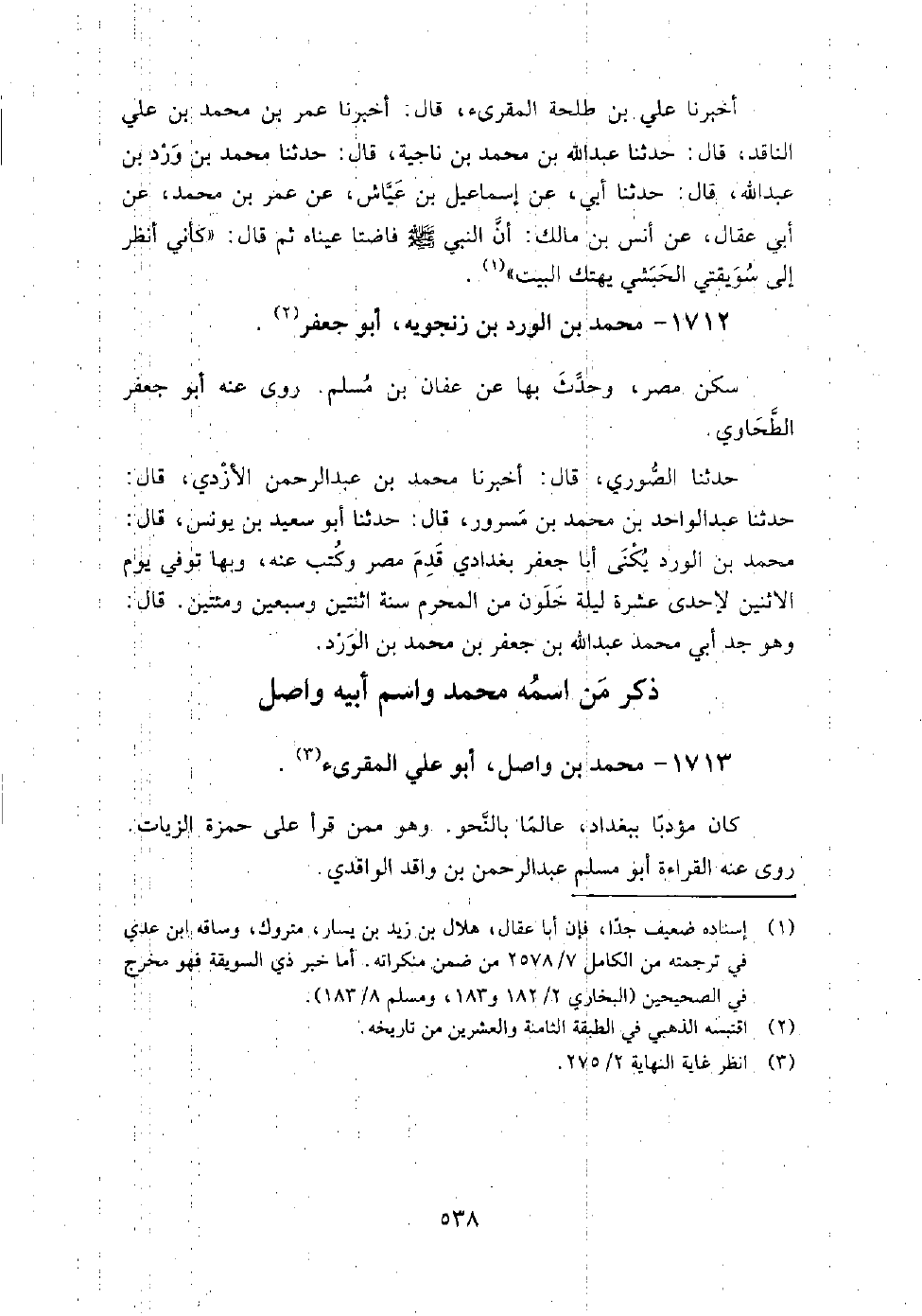 1713 - محمد بن واصل أبو علي المقرئ كان مؤدبا ببغداد، عالما بالنحو.