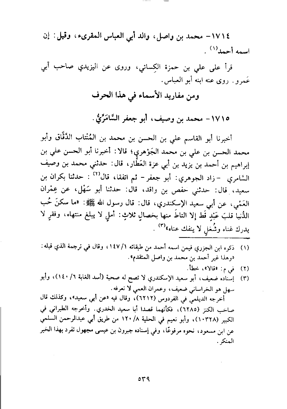 1714 - محمد بن واصل والد أبي العباس المقرئ وقيل أن اسمه أحمد