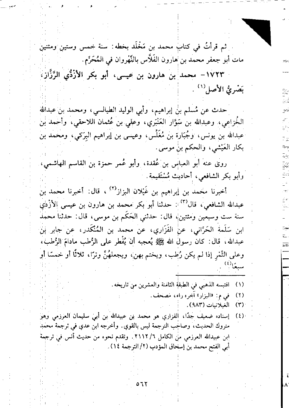 1723 - محمد بن هارون بن عيسى أبو بكر الأزدي الرزاز بصري الأصل