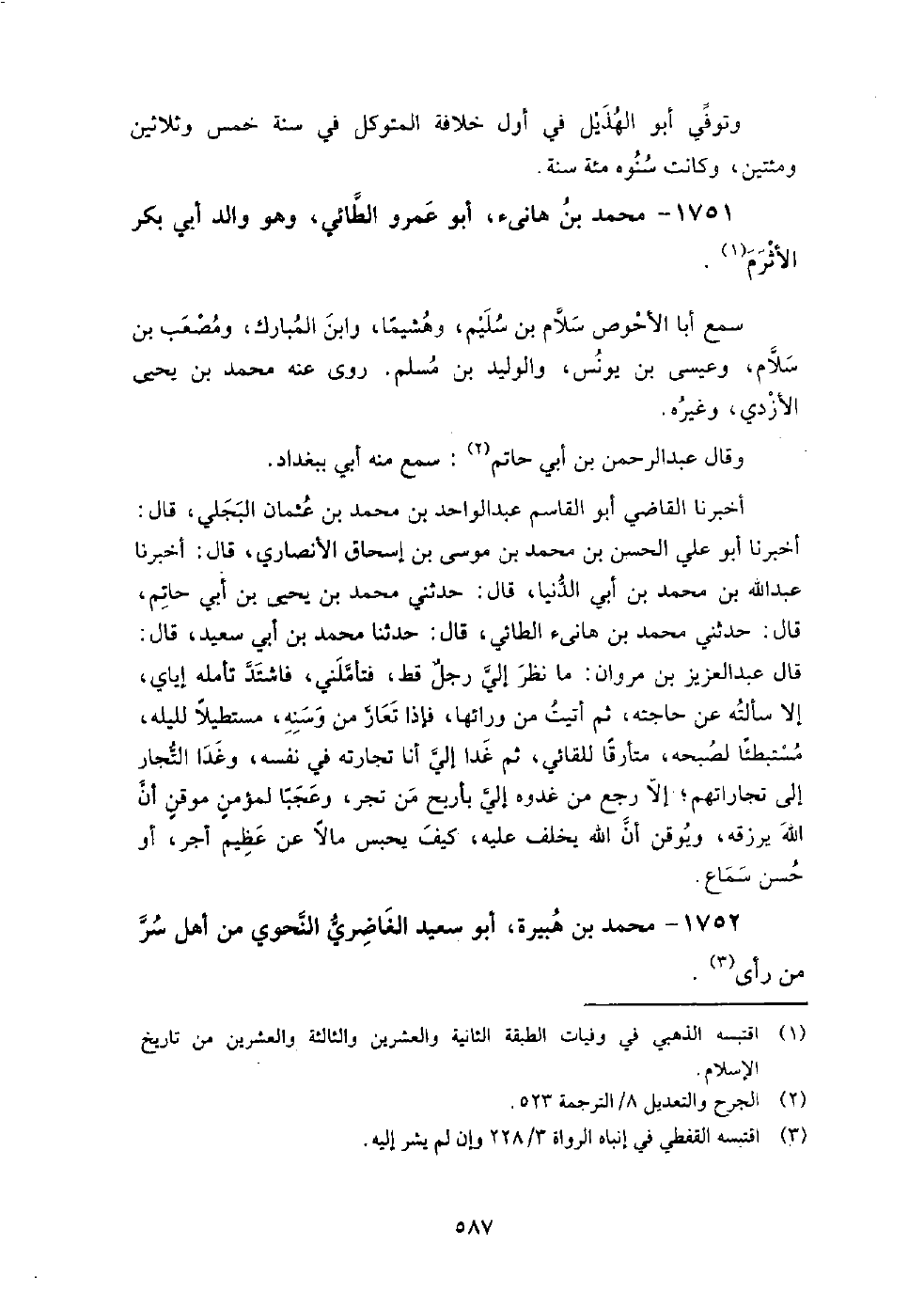 1751 - محمد بن هانئ أبو عمرو الطائي وهو والد أبي بكر الأثرم