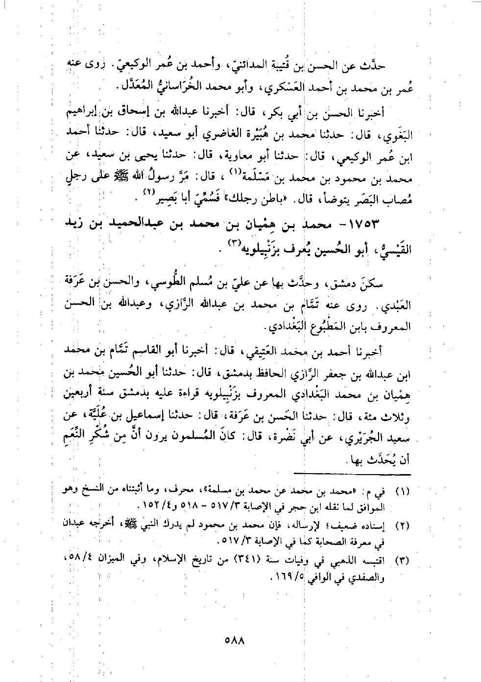 1753 - محمد بن هميان بن محمد بن عبد الحميد بن زيد القيسي أبو الحسين يعرف بزنبيلويه سكن دمشق، وحدث بها عن علي بن مسلم الطوسي والحسن بن عرفة العبدي روى عنه: تمام بن محمد بن عبد الله الرازي، وعبد الله بن الحسن المعروف بابن المطبوع البغدادي.