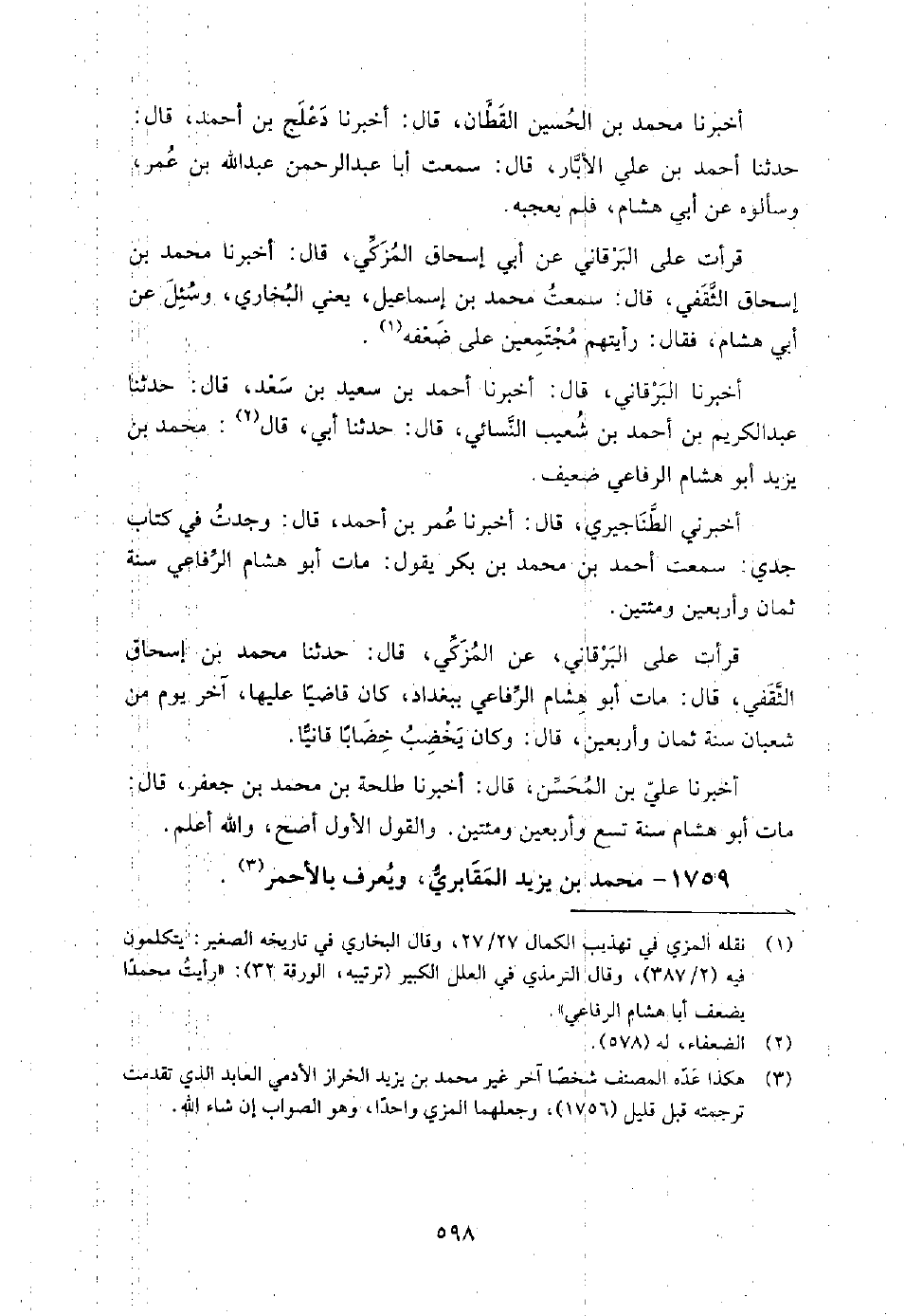 1759 - محمد بن يزيد المقابري ويعرف بالأحمر روى عن عبيدة بن حميد، ويحيى بن سليم الطائفي، وسعيد بن سالم القداح، ومعن بن عيسى القزاز.