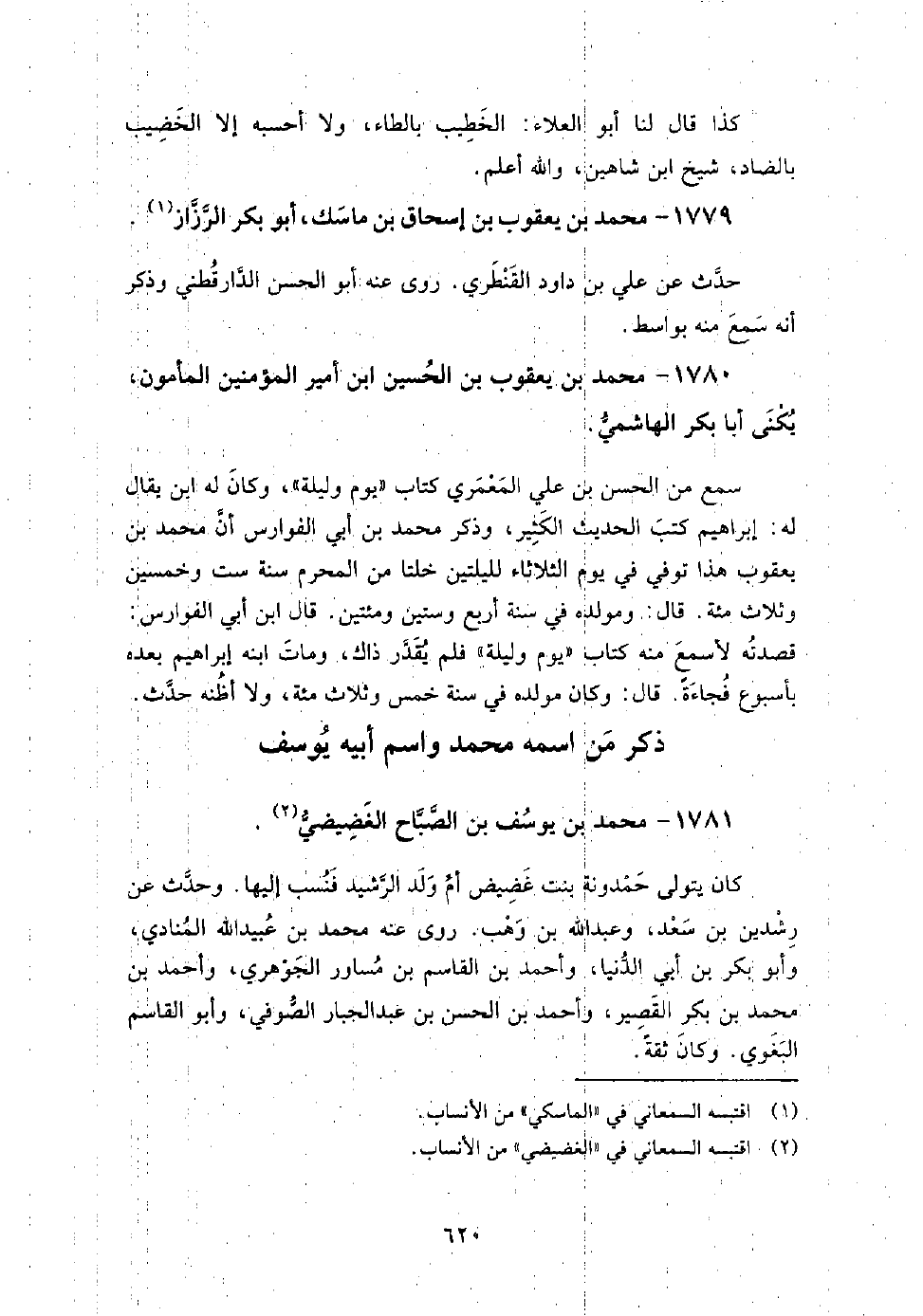 1779 - محمد بن يعقوب بن إسحاق بن ماسك أبو بكر الرزاز حدث عن: علي بن داود القنطري.