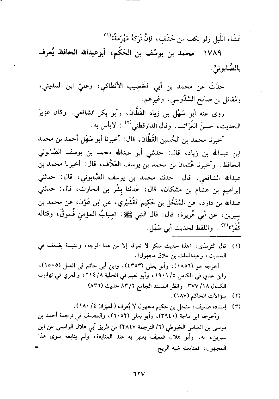 1789 - محمد بن يوسف بن الحكم أبو عبد الله الحافظ يعرف بالصابوني حدث عن: محمد بن أبي الخصيب الأنطاكي، وعلي ابن المديني، ومقاتل بن صالح السدوسي، وغيرهم.