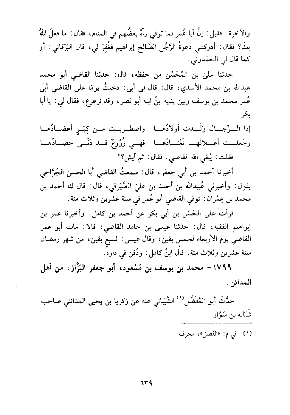 1799 - محمد بن يوسف بن مسعود أبو جعفر البزاز من أهل المدائن، حدث أبو المفضل الشيباني عنه عن زكريا بن يحيى المدائني صاحب شبابة بن سوار.