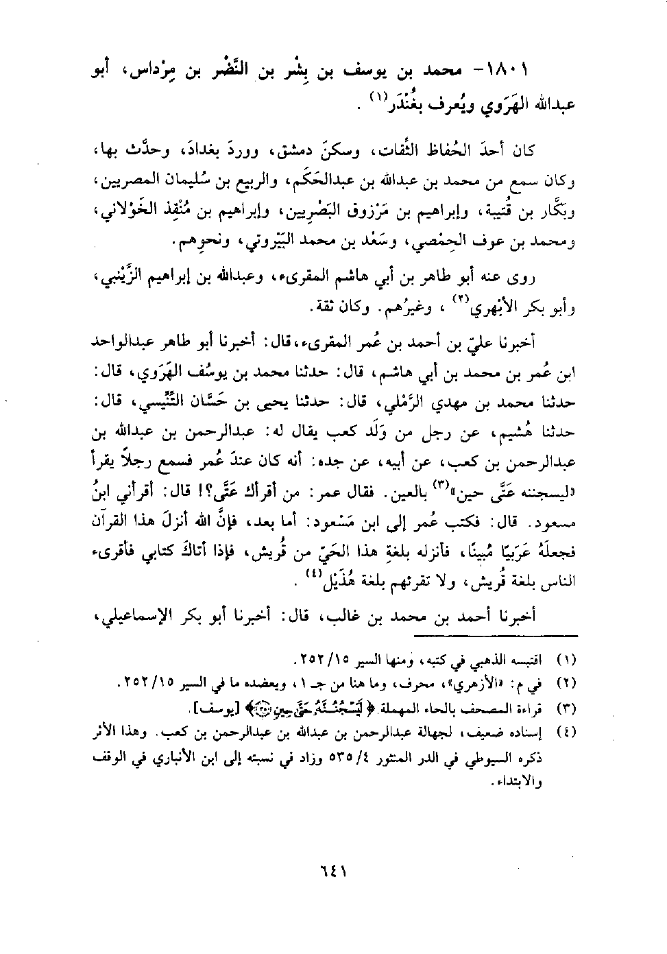 1801 - محمد بن يوسف بن بشر بن النضر بن مرداس أبو عبد الله الهروي ويعرف بغندر