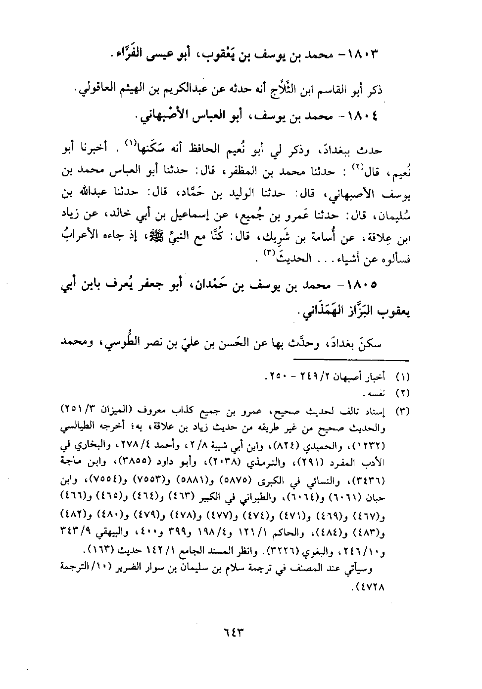 1804 - محمد بن يوسف أبو العباس الأصبهاني حدث ببغداد، وذكر لي أبو نعيم الحافظ أنه سكنها.