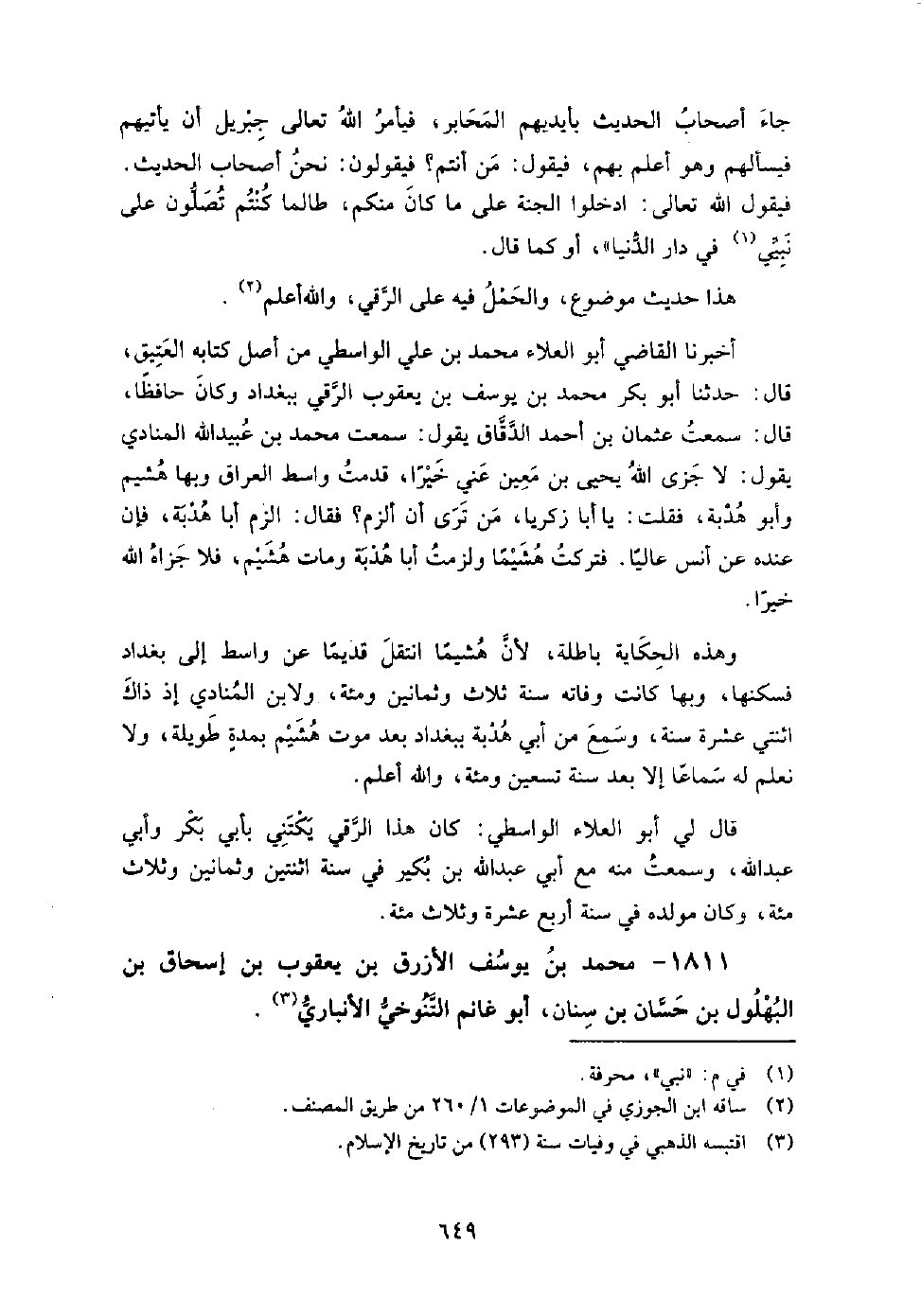 1811 - محمد بن يوسف الأزرق بن يعقوب بن إسحاق بن البهلول بن حسان بن سنان أبو غانم التنوخي الأنباري حدث ببغداد عن أبيه، وعن أبي بكر ابن الأنباري، ومحمد بن مخلد العطار، والحسين بن محمد بن سعيد المطبقي.
