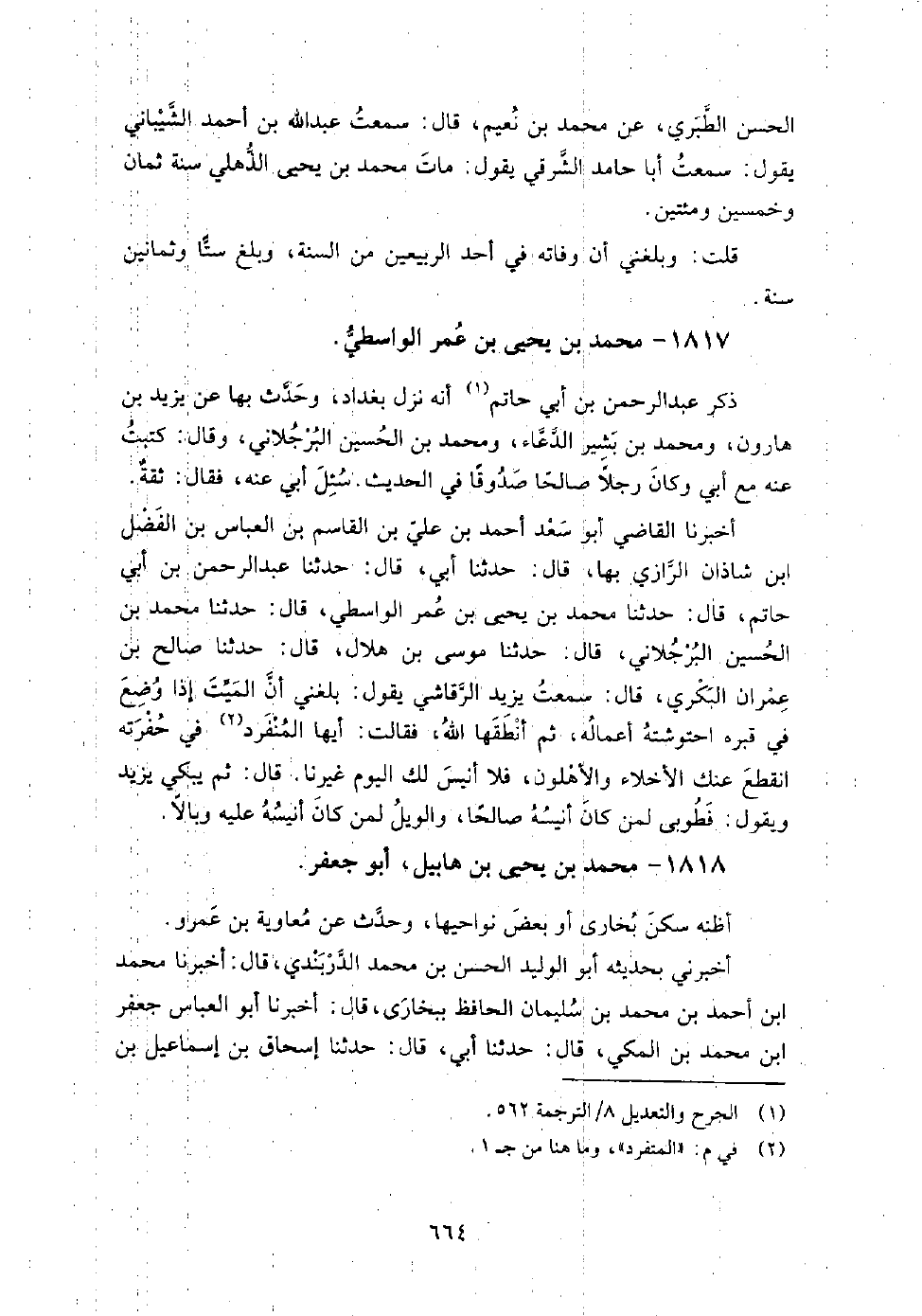 1818 - محمد بن يحيى بن هابيل أبو جعفر أظنه سكن بخارى أبو بعض نواحيها وحدث عن معاوية بن عمرو