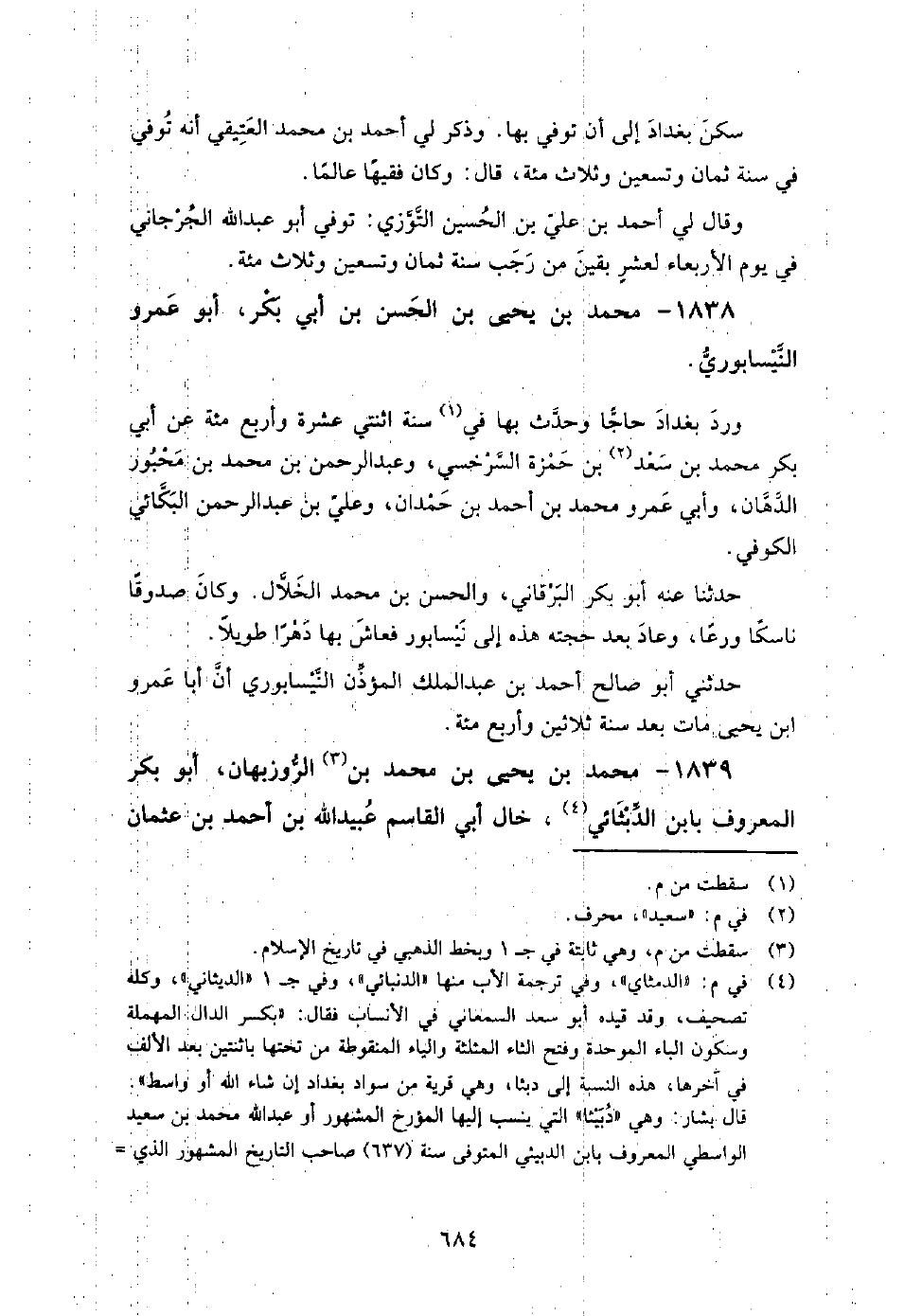 1839 - محمد بن يحيى بن محمد بن الروزبهان أبو بكر المعروف بابن الدِّبْثَائي خال أبي القاسم عبيد الله بن أحمد بن عثمان الصيرفي