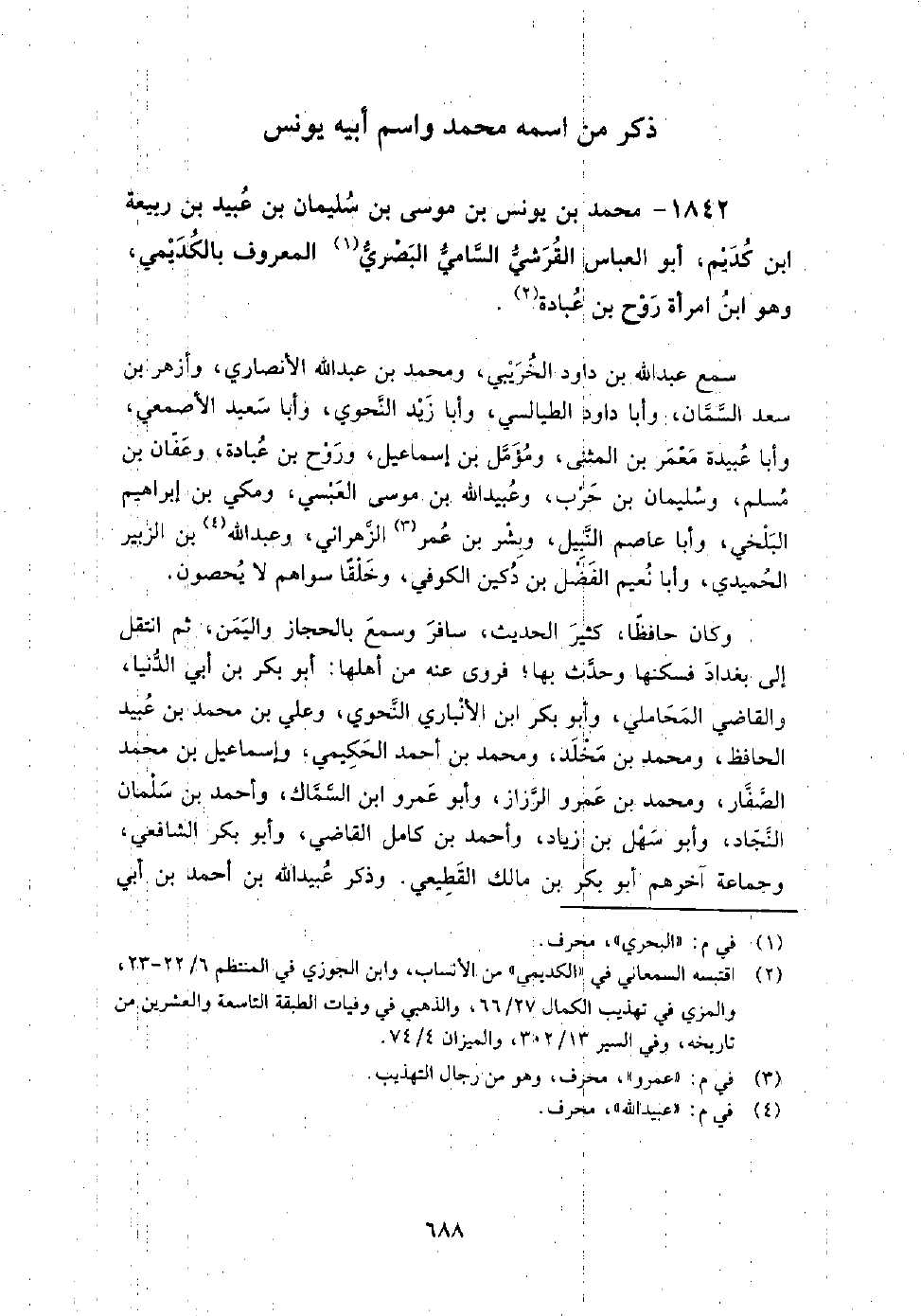 1842 - محمد بن يونس بن موسى بن سليمان بن عبيد بن ربيعة بن كديم أبو العباس القرشي السامي البصري المعروف بالكديمي وهو ابن امرأة روح بن عبادة