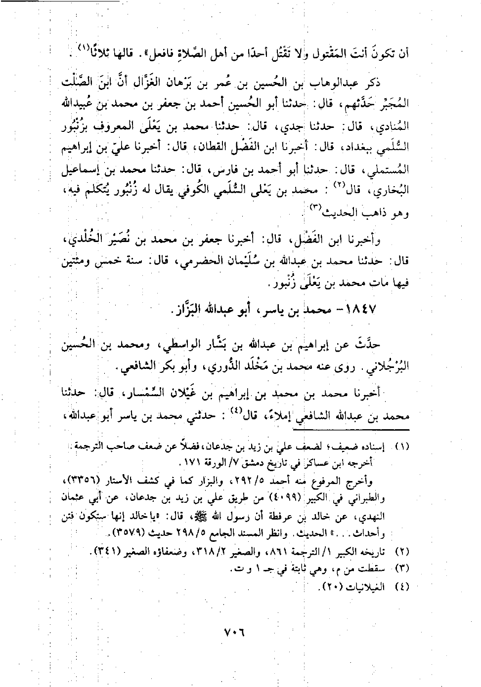 1847 - محمد بن ياسر أبو عبد الله البزاز حدث عن: إبراهيم بن عبد الله بن بشار الواسطي، ومحمد بن الحسين البرجلاني.