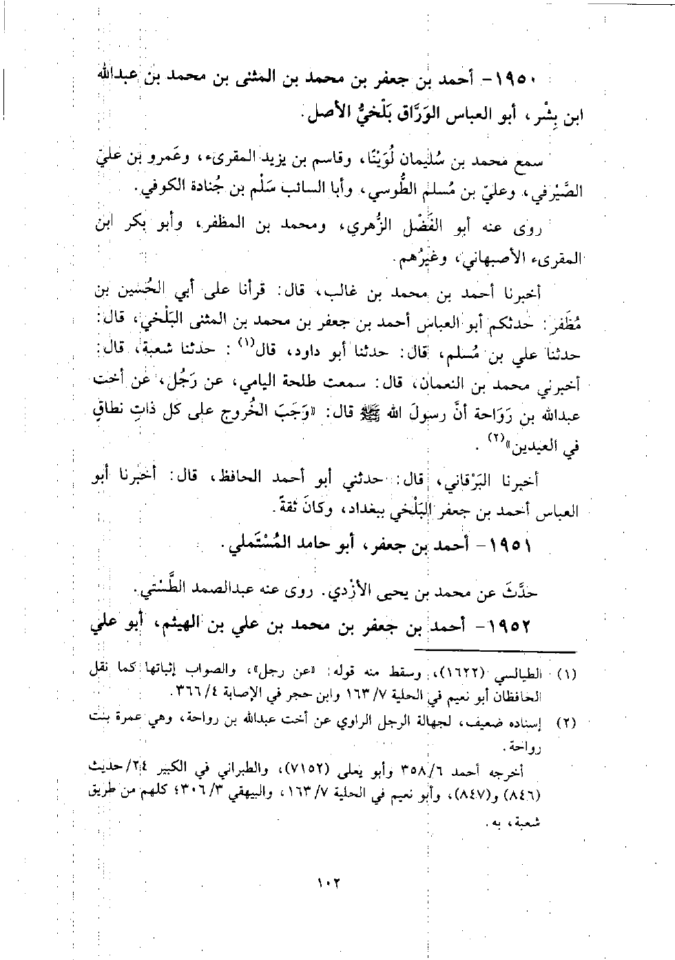1950 - أَحْمَد بْن جعفر بْن مُحَمَّد بْن المثنى بْن مُحَمَّد بْن عَبْد اللَّه بْن بشر أَبُو الْعَبَّاس الوراق بلخي الأصل