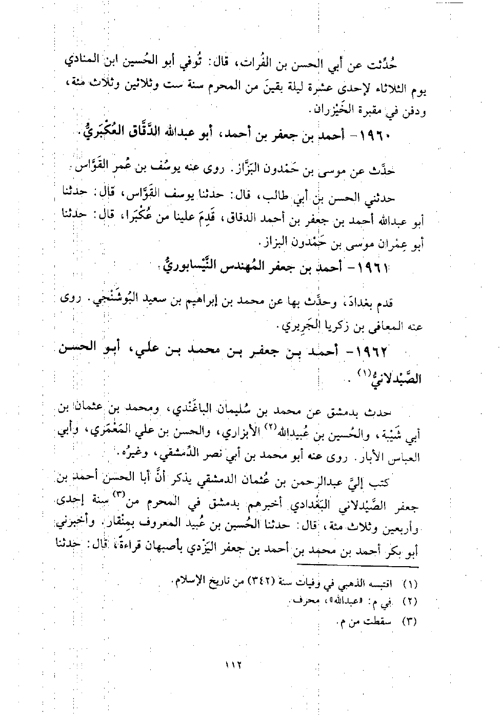 1960 - أَحْمَد بْن جعفر بْن أَحْمَدَ أَبُو عَبْد اللَّه الدَّقَّاق العكبري حدث عَنْ مُوسَى بْن حمدون البزاز.