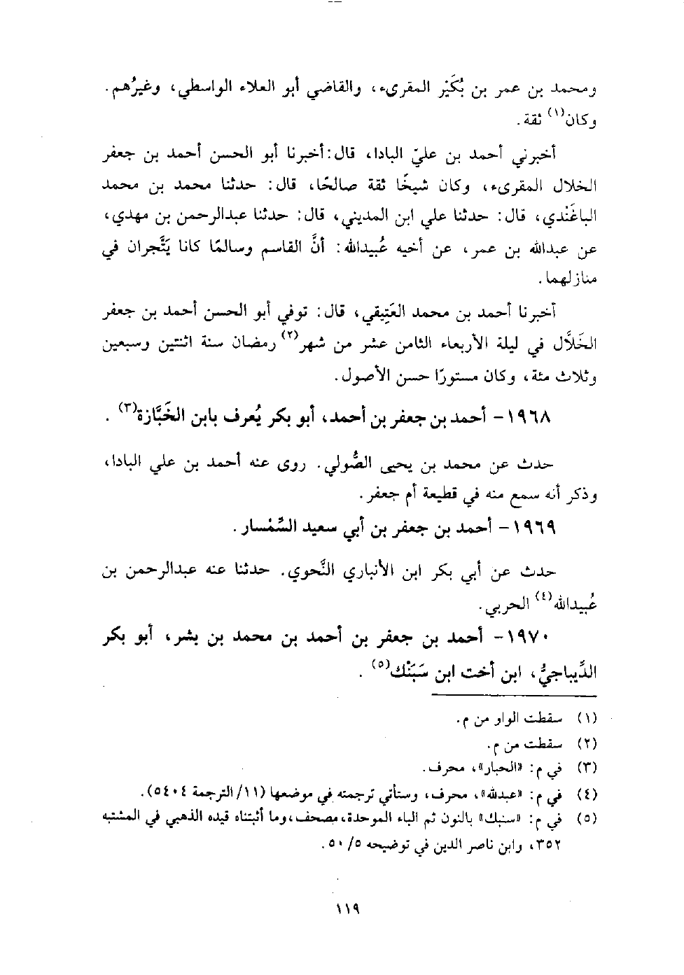 1969 - أَحْمَد بْن جعفر بْن أَبِي سَعِيد السمسار حدث عَنْ أَبِي بَكْر بْن الأنباري النحوي، حَدَّثَنَا عَنْهُ عَبْد الرَّحْمَن بْن عُبَيْد اللَّهِ الحربي.